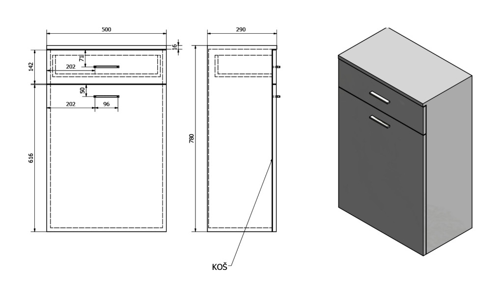 Aqualine Zoja /Keramia Fresh alsó szekrény szennyeskosárral, FEHÉR (51310)