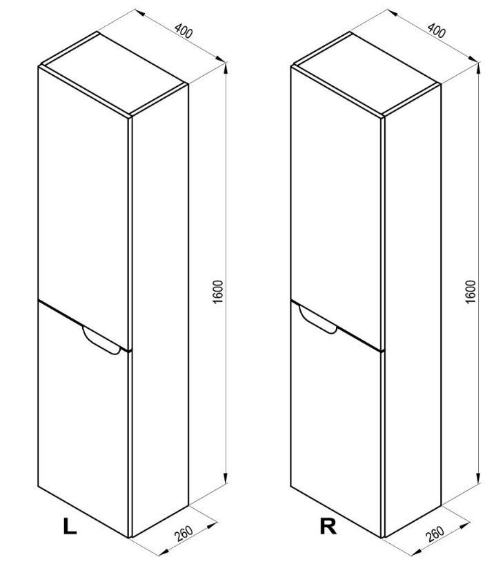Méretek (szélesség x mélység x magasság): 40 x 26 x 160 cm