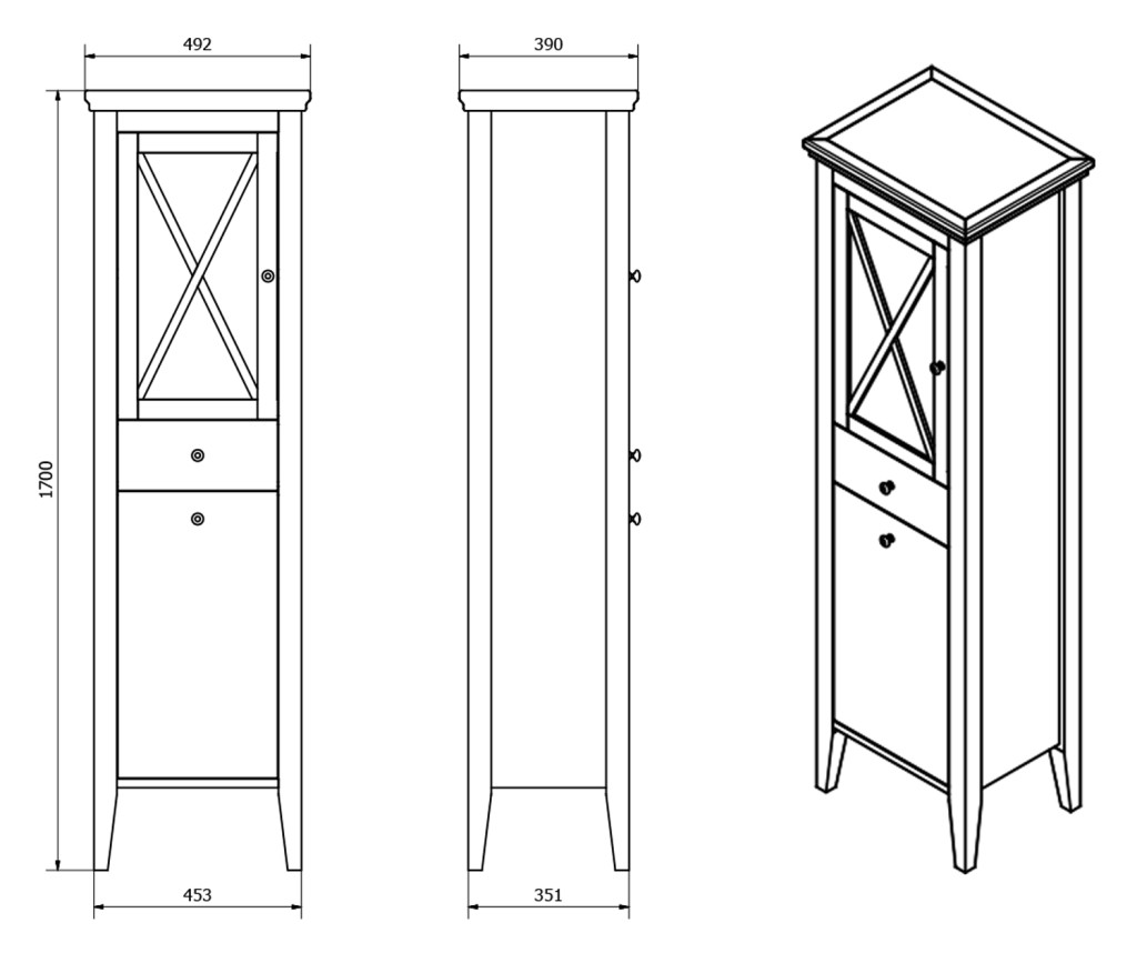 Álló szekrény, Sapho Cross antik fehér balos 170 CR216