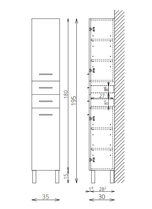 Korpusz és front: vákuumpréselt MDF front, laminált lapok