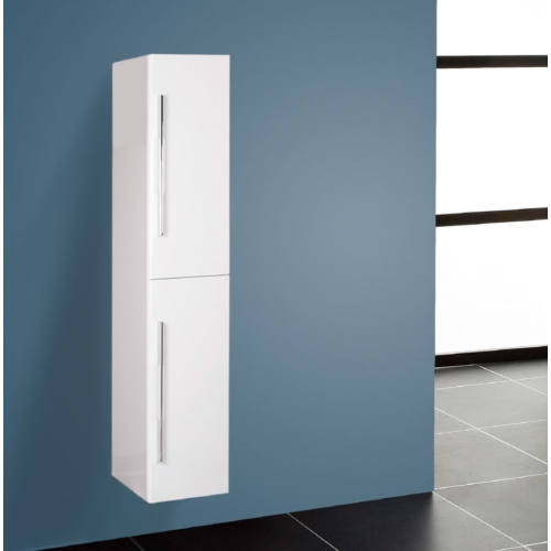 2 ajtós függesztett magas szekrény15 mm vastag MDF korpusz magasfényű lakkozott fehér felülettel18 mm vastag MDF front lakkozott fehér felülettelkrómozott acél fogantyúkkalforgatható nyitásirányú nyílóajtókkalMéret: 35×30×140 cm
