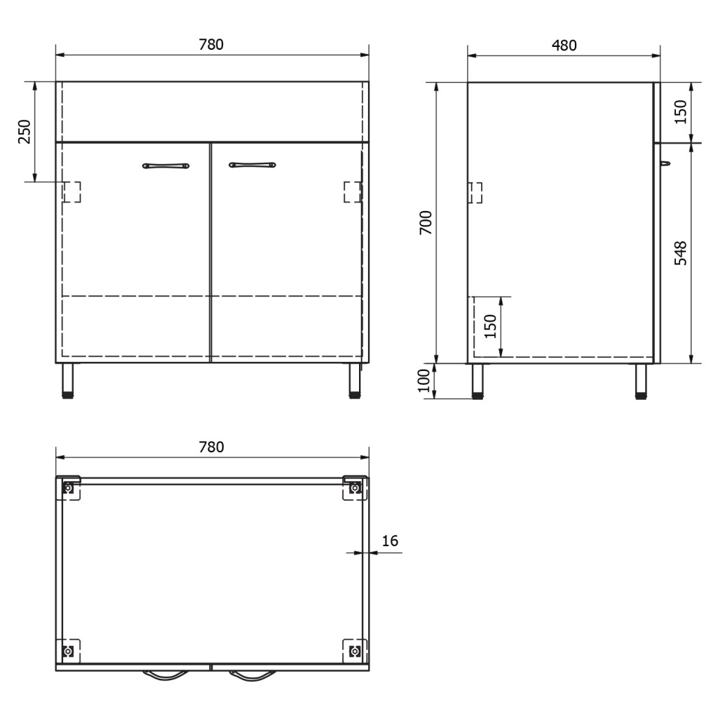 Alsó szekrény, Aqualine mosdótartó szekrény 78x70x48cm 57036