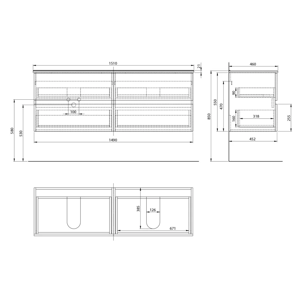 Alsó szekrény, Aqualine Paneda mosdótartó szekrény, 149x55x45,2 cm PN215