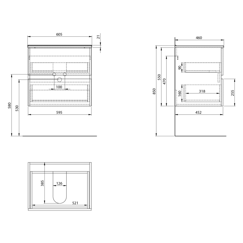Alsó szekrény, Aqualine Paneda mosdótartó szekrény, 59,5x55x45,2cm PN260