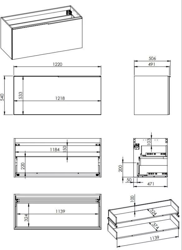 Alsó szekrény, AREZZO design Malibu alsószekrény 120 1 fiók + 1 fiók , matt szürke