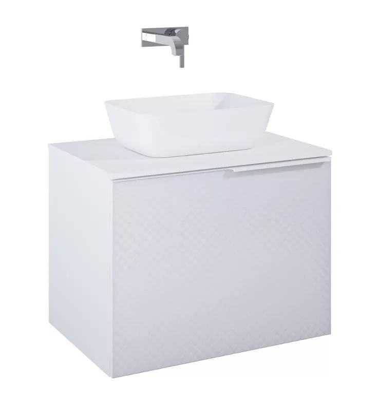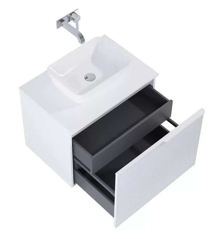 TECHNIKAI LEÍRÁS: összeszerelt termék szín: matt fehér belső fiók szifonkivágás nélkül, így helytakarékos szifon beszerelése szükséges fiók a fiókban kialakítás előlap és korpusz16 mmes laminált forgácslapból dekorüveggel borított előlap teljes kihúzható, softclose fiókok fém oldallal színazonos alumínium fogantyú 2 állítható fém akasztó 240 kg összkapacitású