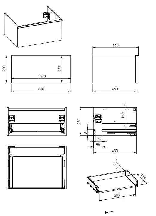 Alsó szekrény, AREZZO design MONTEREY 60 cm-es alsószekrény 1 fiókkal Lincoln dió színben, szifon