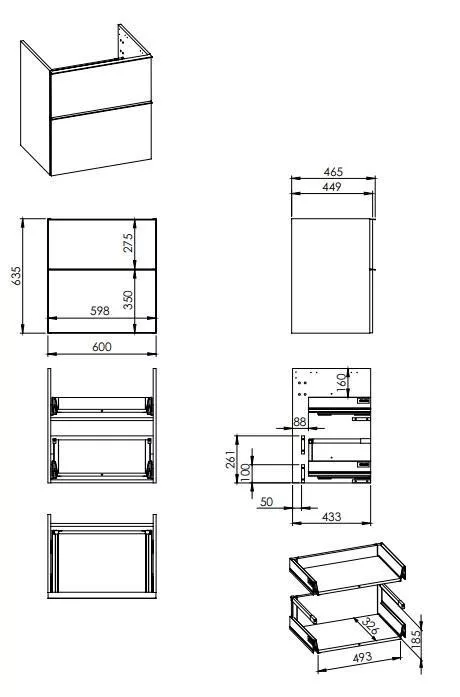Alsó szekrény, AREZZO design MONTEREY 60 cm-es alsószekrény 2 fiókkal Matt fekete színben, szifon