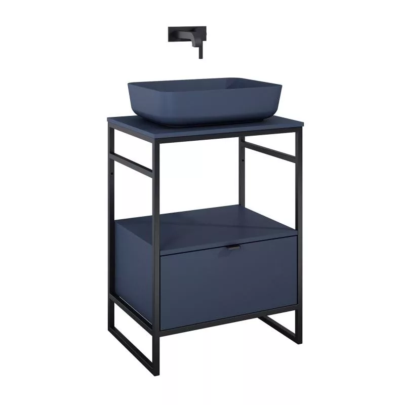 Alsó szekrény, AREZZO design NEBO alsószekrény 60 cm-es, 1 fiókkal, matt kék, matt fekete (2 dobo