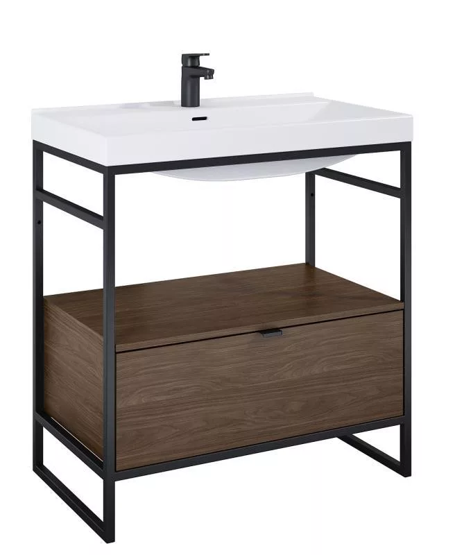 Alsó szekrény, AREZZO design NEBO alsószekrény 80 cm-es, 1 fiókkal, lincoln dió, matt fekete (2 d