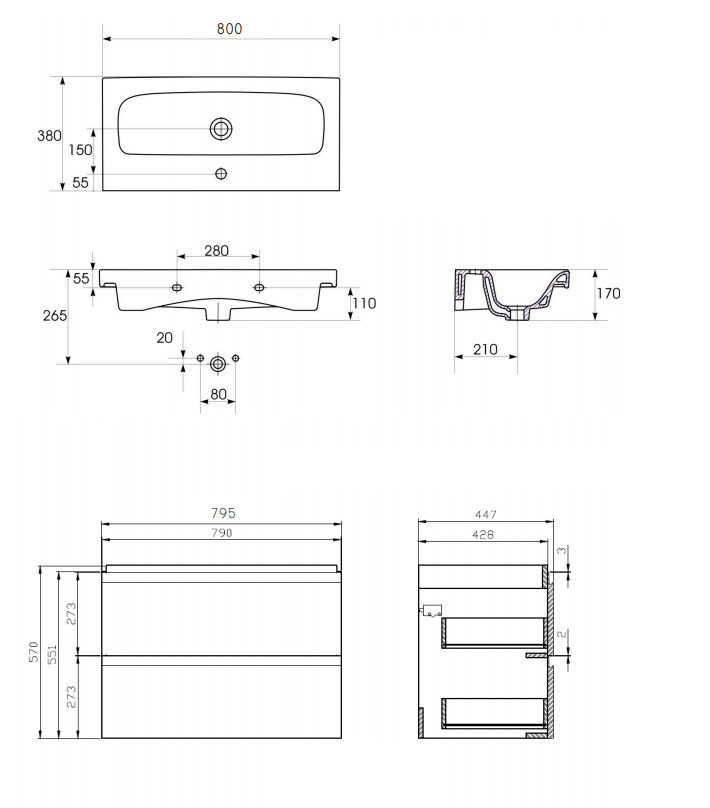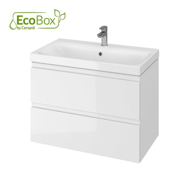 A készlet tartalmaz egy MODUO mosdószekrényt lapra szerelve, MODUO 60 mosdókagylót.