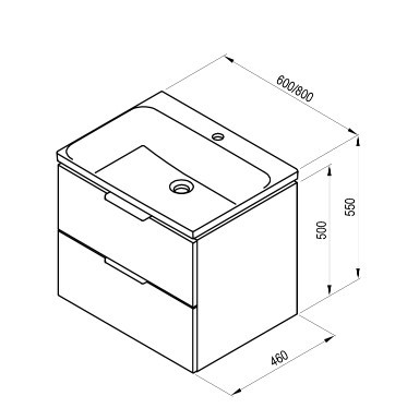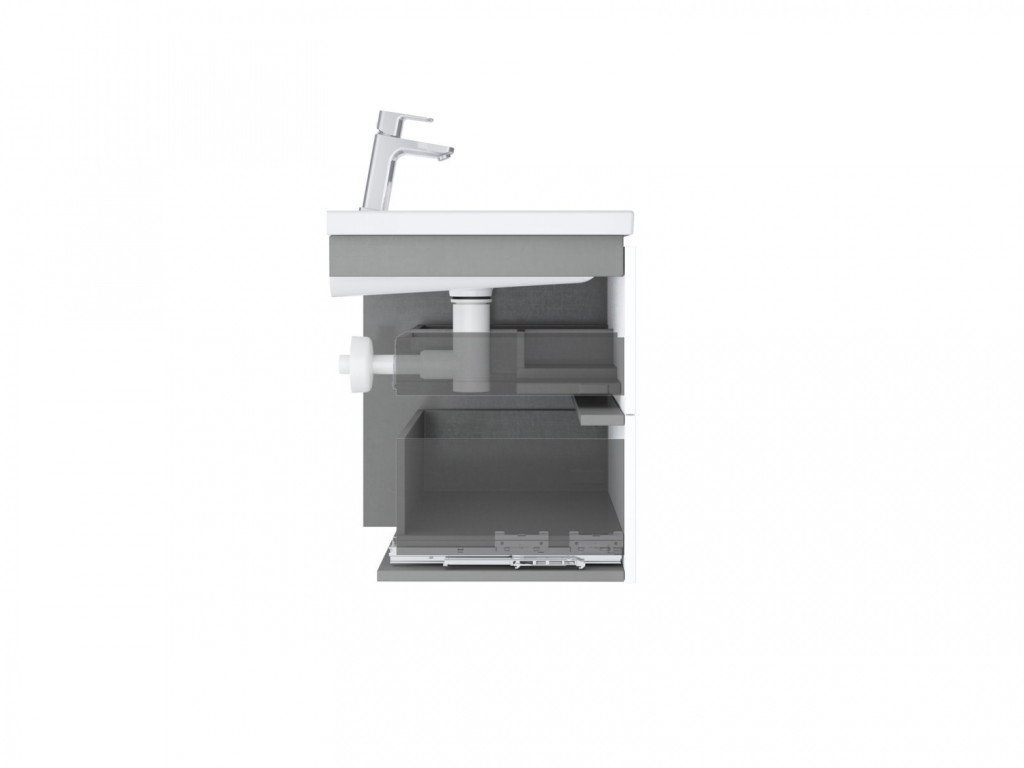 A szekrény a Comfort 80 aláépíthető mosdóhoz van tervezve túlfolyó nélkül, fix kifolyóval ellátott mosdó szifonnal kiegészítve.