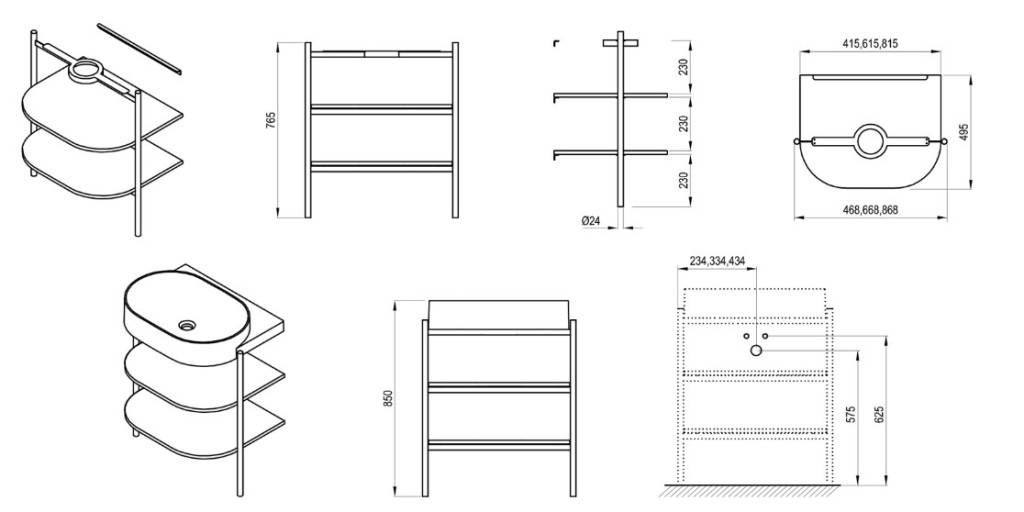A CS Yard 60 polcokkal ellátott álló fémszerkezet kifejezetten a Yard 60 dizájnos mosdóhoz készült.