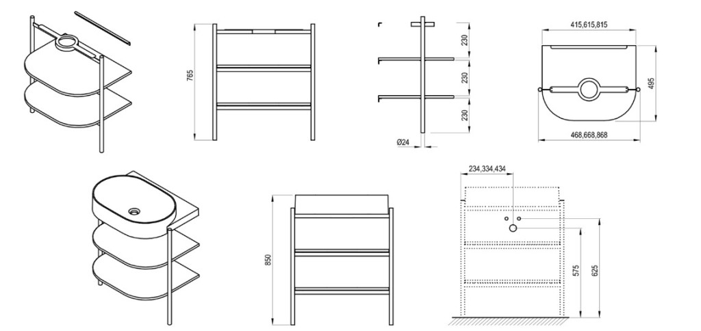 A CS Yard 60 polcokkal ellátott álló fémszerkezet kifejezetten a Yard 60 dizájnos mosdóhoz készült.