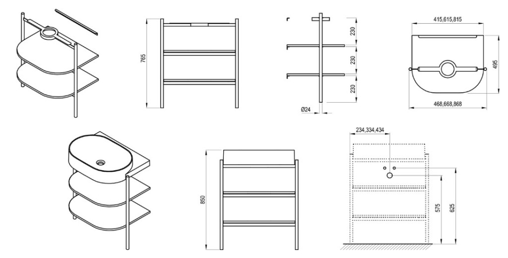 A CS Yard 80 polcokkal ellátott álló fémszerkezet kifejezetten a Yard 80 dizájnos mosdóhoz készült.