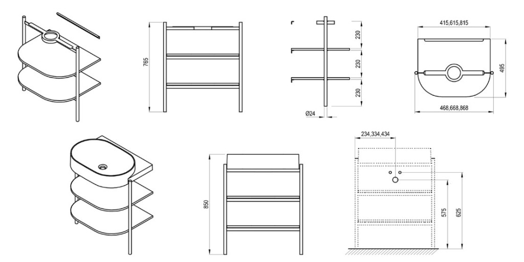 A CS Yard 80 polcokkal ellátott álló fémszerkezet kifejezetten a Yard 80 dizájnos mosdóhoz készült.