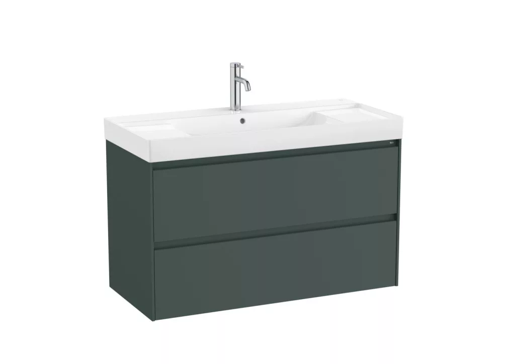 Alsó szekrény, Roca Ona A851693513 mosdószekrény mosdóval, matt zöld