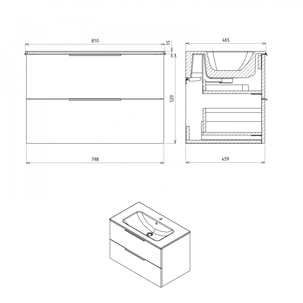 Alsó szekrény, Sapho CIRASA CR801-3030 Mosdótartó szekrény, 2 fiókkal, 79,8x52x46cm