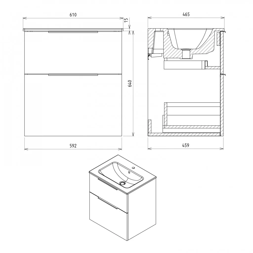 Alsó szekrény, Sapho CR601-2322 Cirasa mosdótartó szekrény, 59,2x64x46 cm, Strip/Alabama tölgy