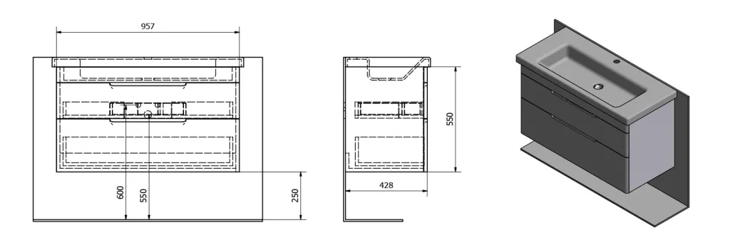 Alsó szekrény, Sapho ELLA mosdótartó szekrény EL100-3030 95,7x50 cm