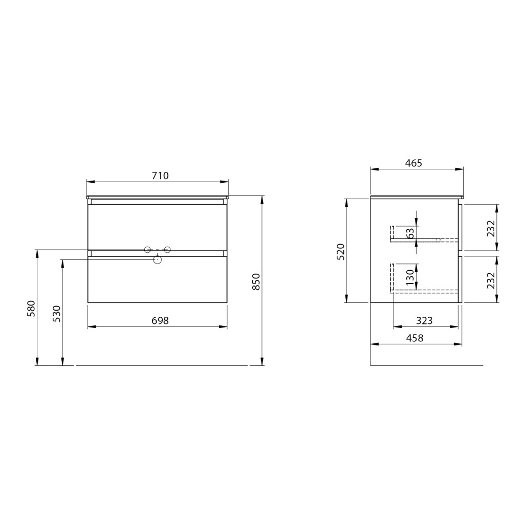 Alsó szekrény, Sapho Ezara mosdótartó szekrény 69,8x52x46 cm, alabama tölgy EZ701-2222