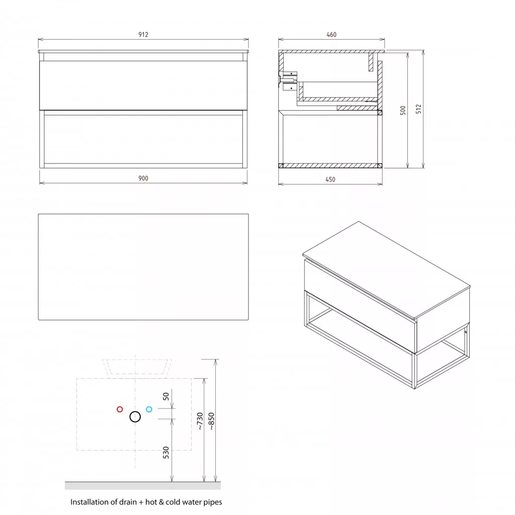 Alsó szekrény, Sapho SKARA CG006-1919 fali mosdótartó szekrény, 90x50x45cm