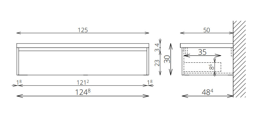 Vasalatok: tandembox, teljes kihúzású, csillapított záródású önbehúzó vasalatok (Terhelhetőség: 30 kg)