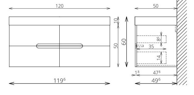 Vasalatok: tandembox, teljes kihúzású, csillapított záródású önbehúzó vasalatok (Terhelhetőség: 30 kg)