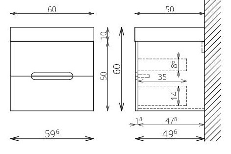 Vasalatok: tandembox, teljes kihúzású, csillapított záródású önbehúzó vasalatok (Terhelhetőség: 30 kg)