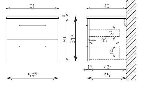 Vasalatok: tandembox, teljes kihúzású, csillapított záródású önbehúzó vasalatok (Terhelhetőség: 30 kg)