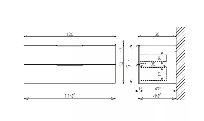Vasalatok: Tandembox, teljes kihúzású, csillapított záródású önbehúzó vasalatok (Terhelhetőség: 30 kg)