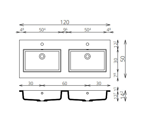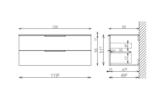 Vasalatok: Tandembox, teljes kihúzású, csillapított záródású önbehúzó vasalatok (Terhelhetőség: 30 kg)
