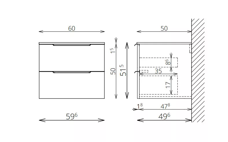 Vasalatok: Tandembox, teljes kihúzású, csillapított záródású önbehúzó vasalatok (Terhelhetőség: 30 kg)