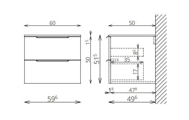 Vasalatok: Tandembox, teljes kihúzású, csillapított záródású önbehúzó vasalatok (Terhelhetőség: 30 kg)