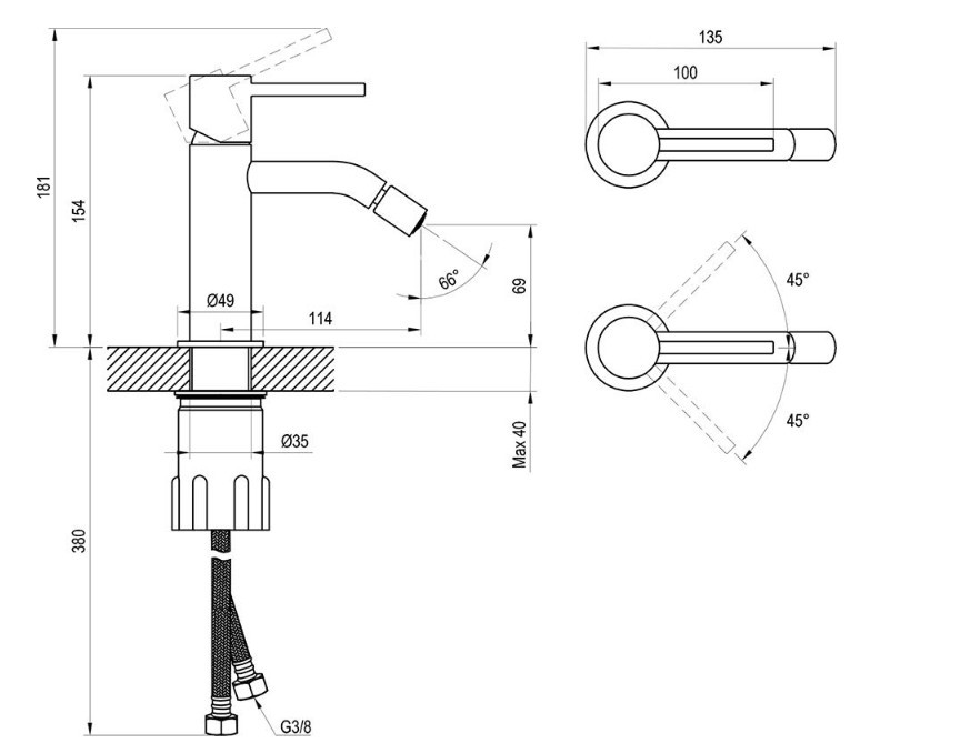 Csatlakozó tömlők: rugalmas 450 mm, DN6 átmérő, G3/8