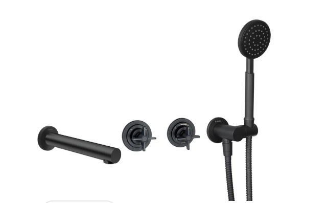 Falba süllyesztett csaptelep, Deante Temisto kádtöltő csaptelep zuhanyszettel, fekete BQT_N18P