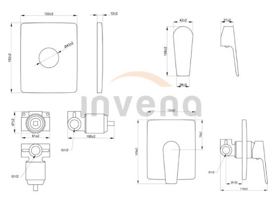 Falba süllyesztett csaptelep, Invena Dokos egyfunkciós csaptelep, króm BP-19-BK1-A