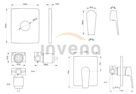 Falba süllyesztett csaptelep, Invena Dokos egyfunkciós csaptelep, króm BP-19-GK1-A
