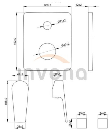 Falba süllyesztett csaptelep, Invena Dokos kétfunkciós csaptelep, króm BP-19-BK2-A