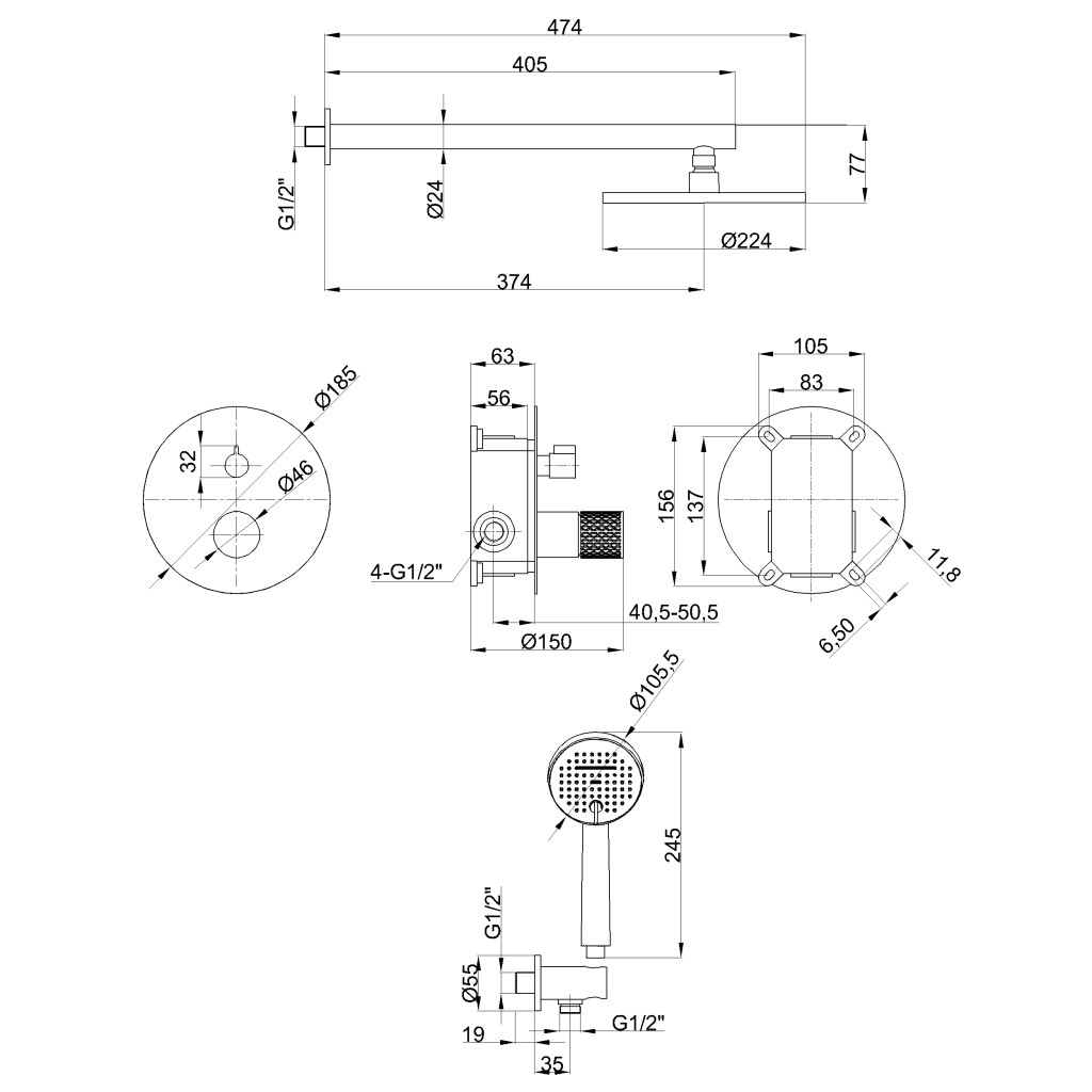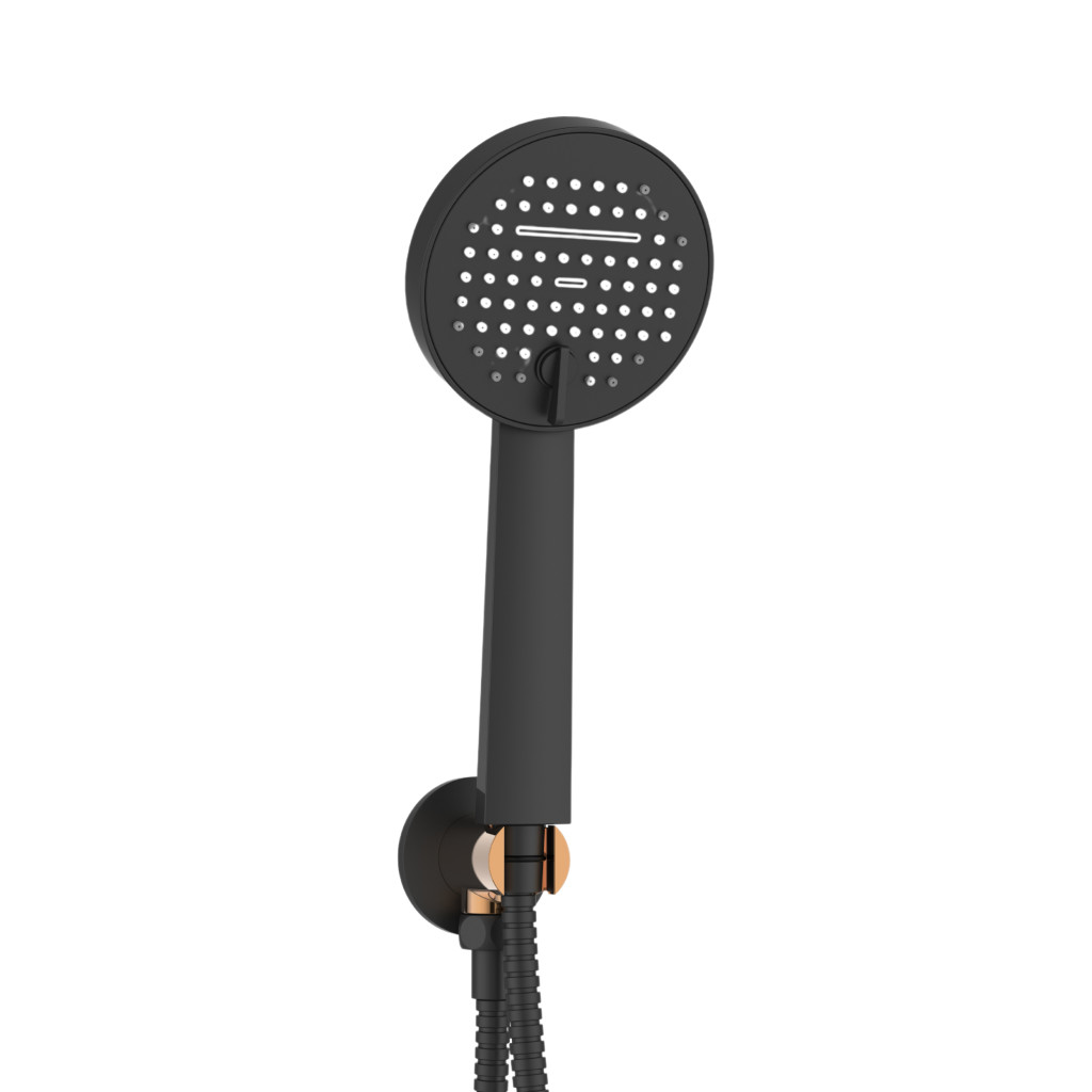 Kézizuhany: Két funkciós 10,5 cm átmérőjű, anti-calc és vízlevegő-keveréses rendszerrel, könnyen tisztítható és környezetbarát megoldás.