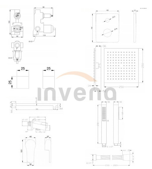 Falba süllyesztett csaptelep, Invena Verso falsík alatti zuhanyrendszer szett, króm BS-82-K02-A
