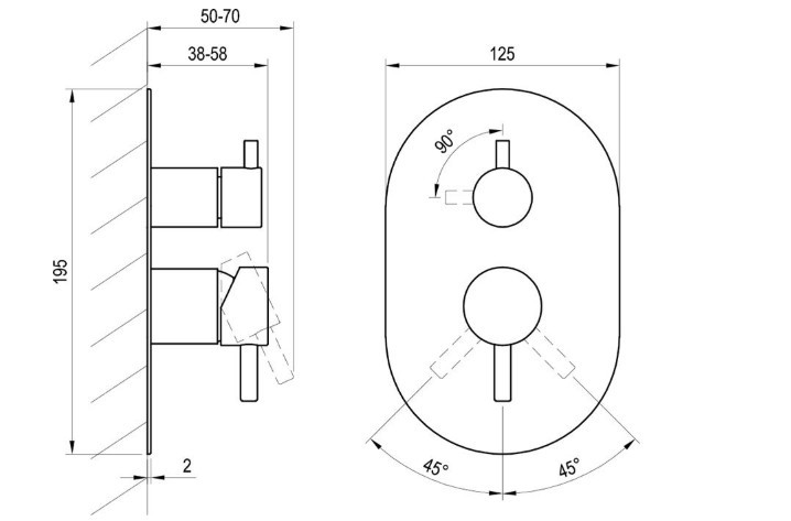Alkalmazható: kádakhoz, túlfolyóval és kézi zuhanykifolyóval, zuhanykabinokhoz, amelyeknek fix fej- és kézi zuhanyzójuk van