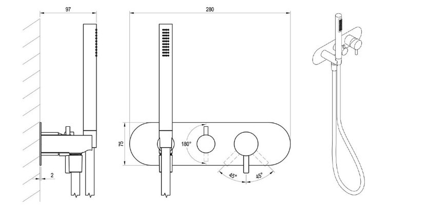 Alkalmazható: túlfolyóval töltött kádakhoz, kézi zuhanyra váltással, zuhanyzókhoz, amelyeknek fix zuhanyfejük van kézi zuhanyra váltással