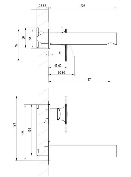 Kifolyó kar hossza: 203 mm