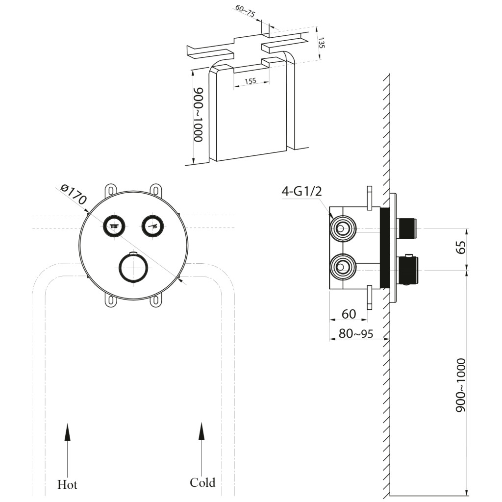 Falba süllyesztett csaptelep, Sapho Smartselect termosztatikus, 2 irányú, matt fekete RP032B
