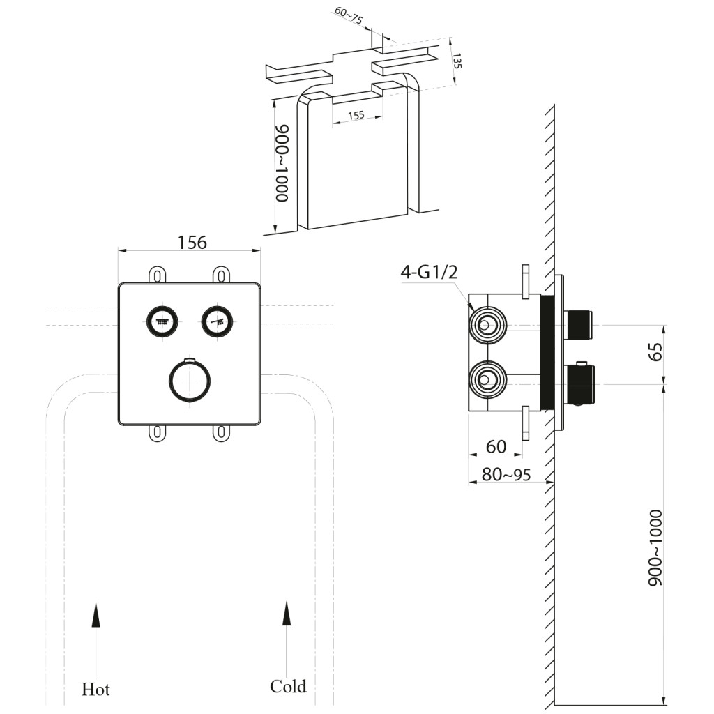 Falba süllyesztett csaptelep, Sapho Smartselect termosztatikus, 2 irányú, matt fekete RP042B