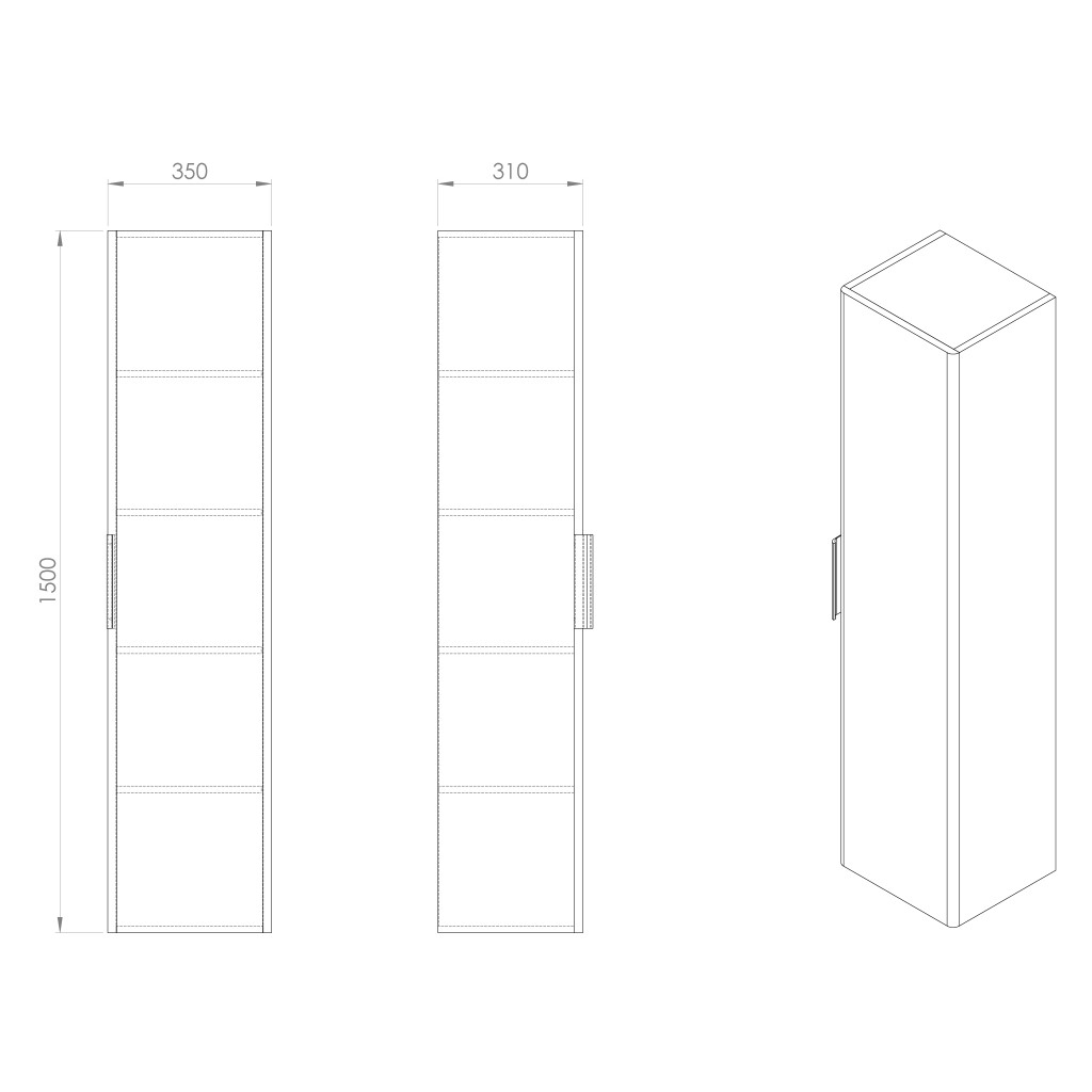 Fali szekrény, Aqualine Deneb fali szekrény fogantyú nélkül, 31x150x35 cm L/P, matt fehér DN180