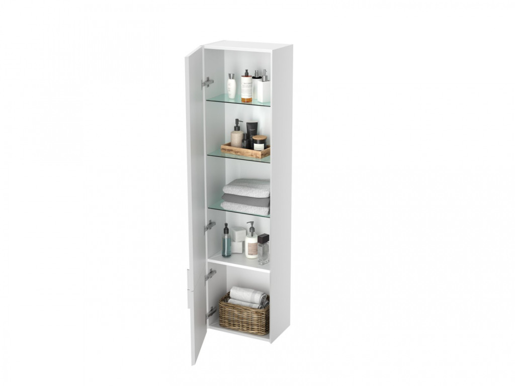 Clear II faliszekrény három üvegpolccal a felső részben.