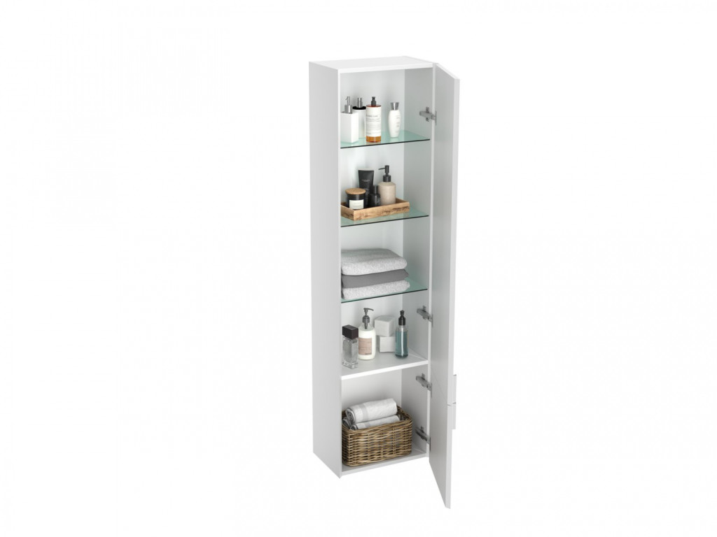 Clear II faliszekrény három üvegpolccal a felső részben.