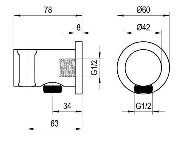 Fali zuhanycsatlakozó, Ravak 706.10WV Fali kiállás integrált zuhanyrózsa tartóval, White Velvet X